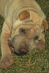 Собаку схожу на маленького гiпопотама, з мордою в складочку, не часто зустрiнеш на вулиц╕. Однак, приемно диву╓шся, коли перехож╕ впiзнають породу iз загадковою назвою шар-пей.