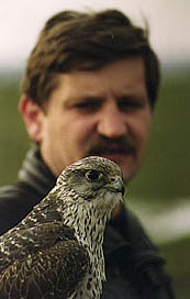 The Gyrfalcon is a bird surrounded by many legends and was valued highly by many world rulers as recently as the 19th century. The Krechet is the largest representative of the true falcons. Females are larger than males and the bird can reach 55-60 cm in size and 2 kg in weight. Falconers sometimes call the bird a falcon hawk. Eastern peoples give the bird, especially its Altaian species, the ancient name turul. Among falconers in Middle Asia it is also known as schumkar or sunkar. According to H.Dementiev, the geographical name Schunkar or Songor is originates from the root of this word. In many Asian territories (within the borders of former Turkestan) some geographical names also have as their origin the name of this legendary hunting bird (e.g. Schumkarkyj). Europeans call the bird Gyrfalcon.