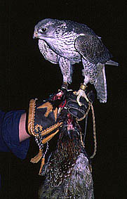 As noted by H. Dementiev, the hunting style of the Gyrfalcon somewhat differs from that of other falcons. Compared to a Peregrine it has shorter casts at the prey and thus loses much less in height in an unsuccessful attack. Characteristic of Gyrfalcons are attacks of such force that a duck can be disemboweled in flight and even such an excellent flyer as the Kite may lose six or seven wing-feathers. The Gyrfalcon is capable of long pursuits of prey, making up to 70 attacks. Unlike the Peregrine, the Gyrfalcon never takes its prey in flight but rather brings it to the ground. This is why from ancient times a Gyrfalcon was flown with a well-trained dog capable of quickly finding and retrieving game. This is also important as a Gyrfalcon can pursue its prey for up to ten miles. Thus, it was also vital to hunt not only with a dog but on horseback or on a camel, as is common among the Arabs. In today’s world these animals are easily replaced by motor vehicles.